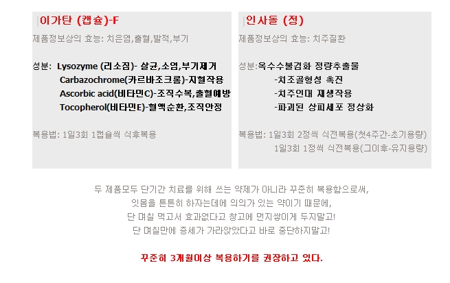 치주질환 하면 떠오르는 대표적인 잇몸약은 인사돌과 이가탄입니다.이 두 제품의 효능과 부작용에 대해 이야기해보려고 합니다.