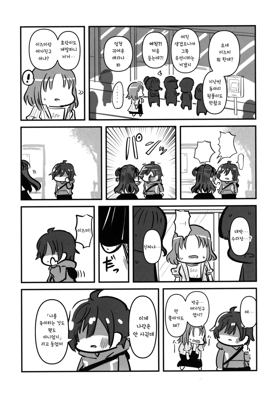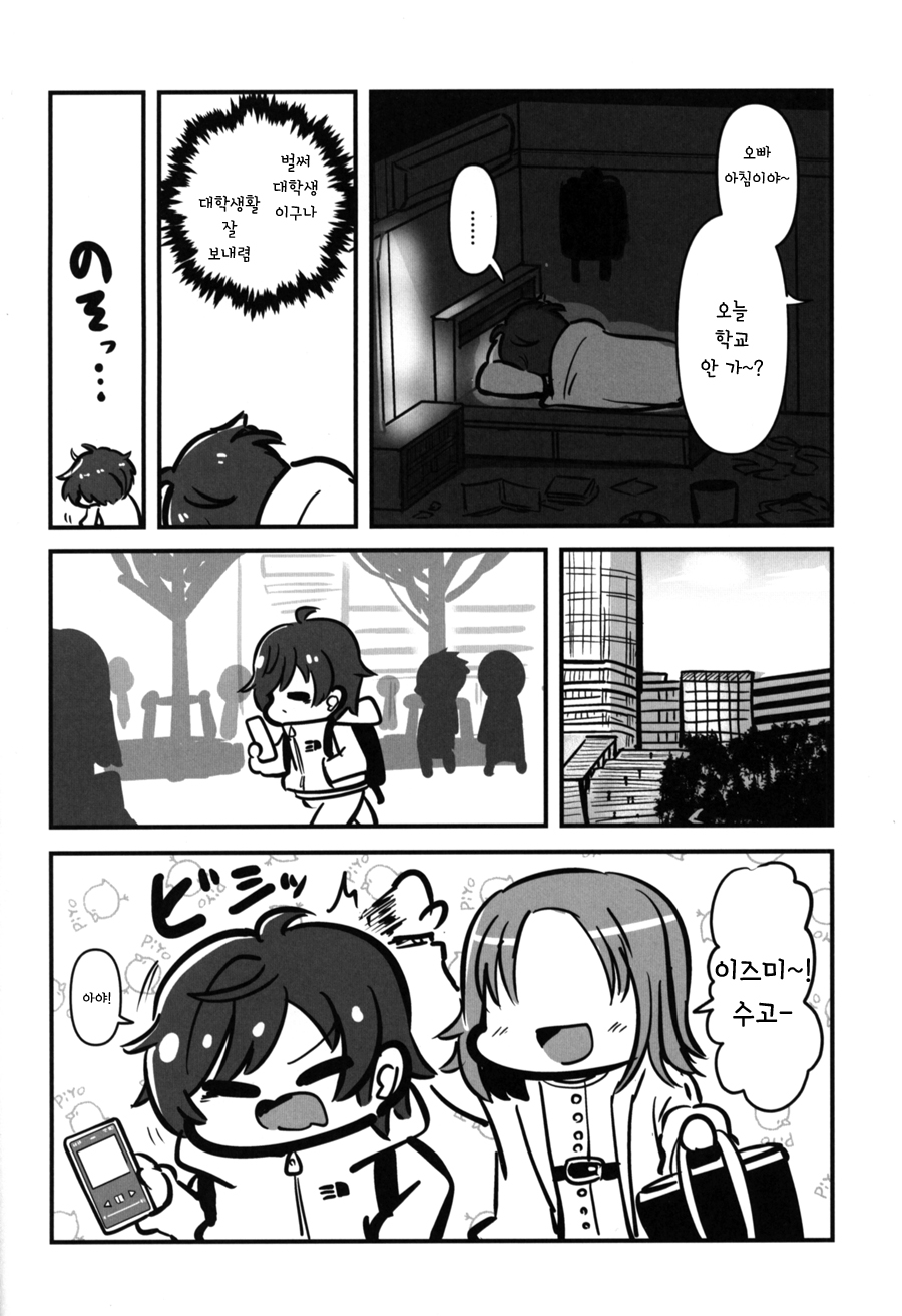 가히 34 메이의 남동생 x 후유코 책의 서클 모리키노코. 남동생인 쿤도 누나를 보면 이즈미가 크면 꽤 자유분방할 텐데, 이미 후유코에 푹 빠져서 앞날(?)이 걱정된다는 게 대체적인 공감대다. 아이돌 가족들의 이야기도 흥미롭다. 개인적으로 유코쿠 형의 얼굴이 보고 싶다.